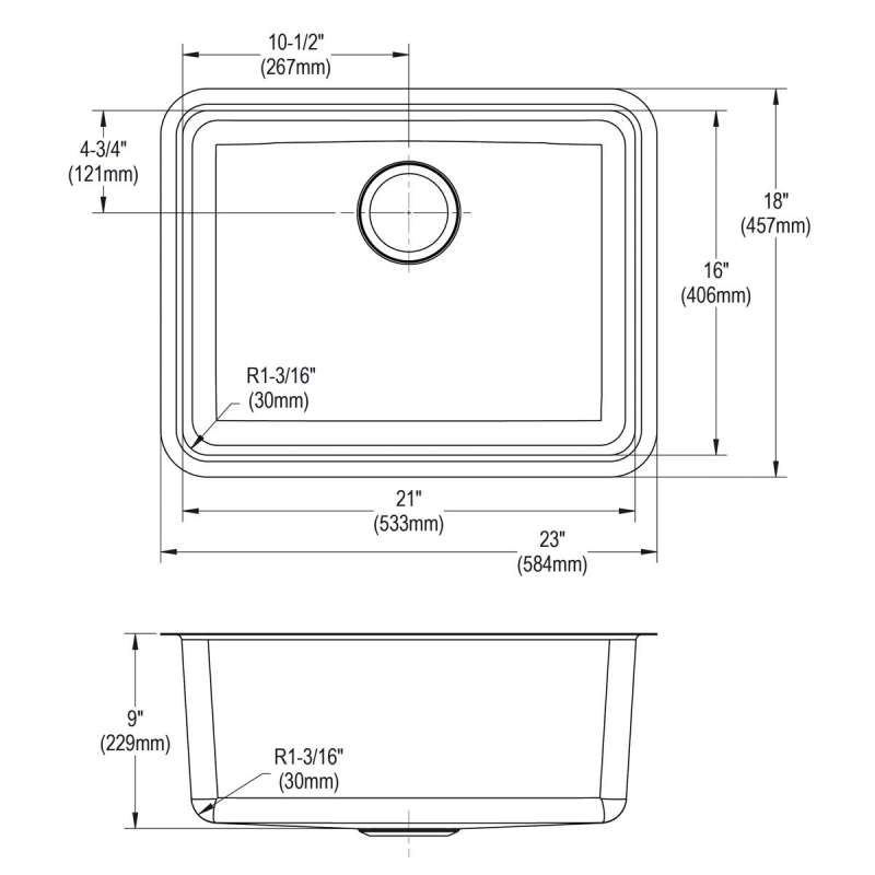 - CABINET SIZE: Minimum cabinet size for this sink is 30"