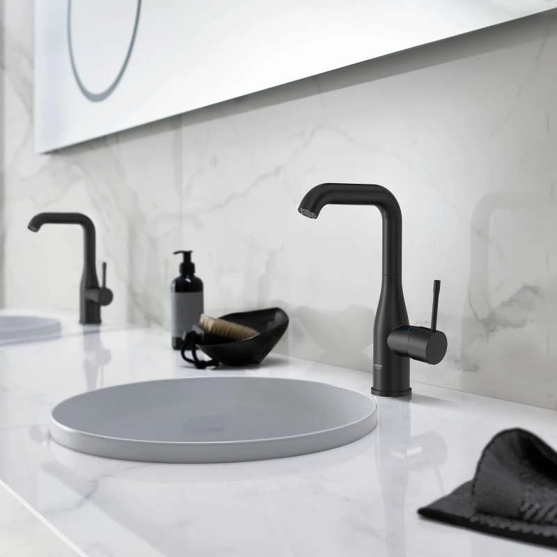 Sleek and sophisticated, the GROHE Essence Single-Handle Single-Hole Bathroom Faucet is a distinctive style with a gently curved swivel spout and side lever handle. This water-saving faucet reduces water usage while providing superior performance. Available in an array of exquisite, on-trend finishes. The Essence single-handle bathroom faucet embodies all the elements of precision craftsmanship and design excellence.