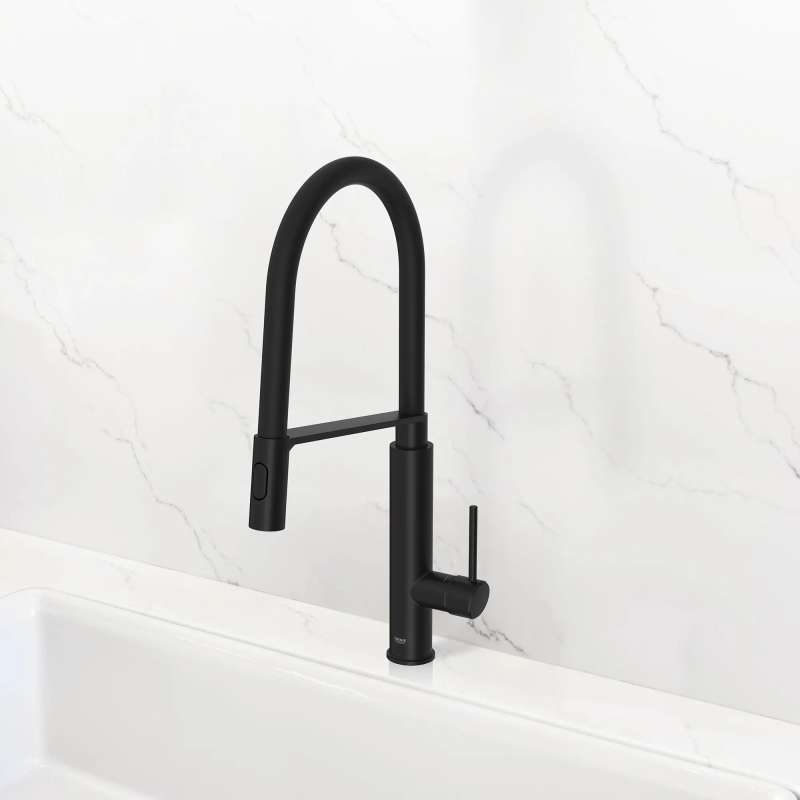 - EASY TO CLEAN: Kitchen faucet sprayer features GROHE SpeedClean rubber nozzles to quickly wipe away limescale with your fingertip