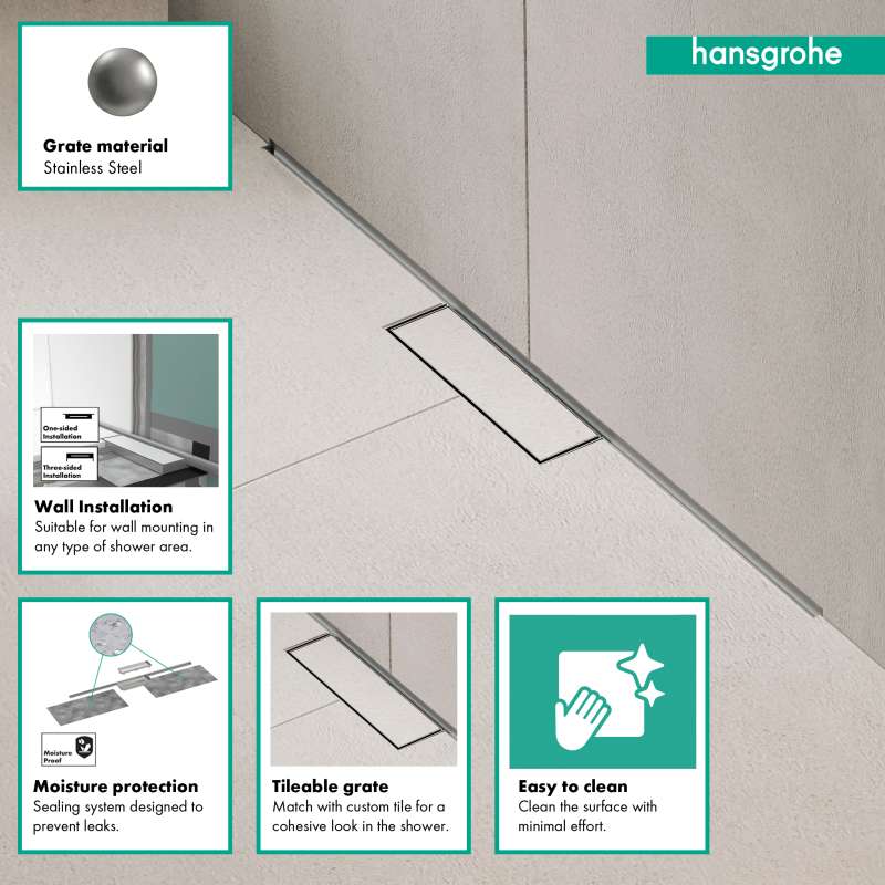 - Coordinating style: The RainDrain drain system coordinates well with any hansgrohe shower system