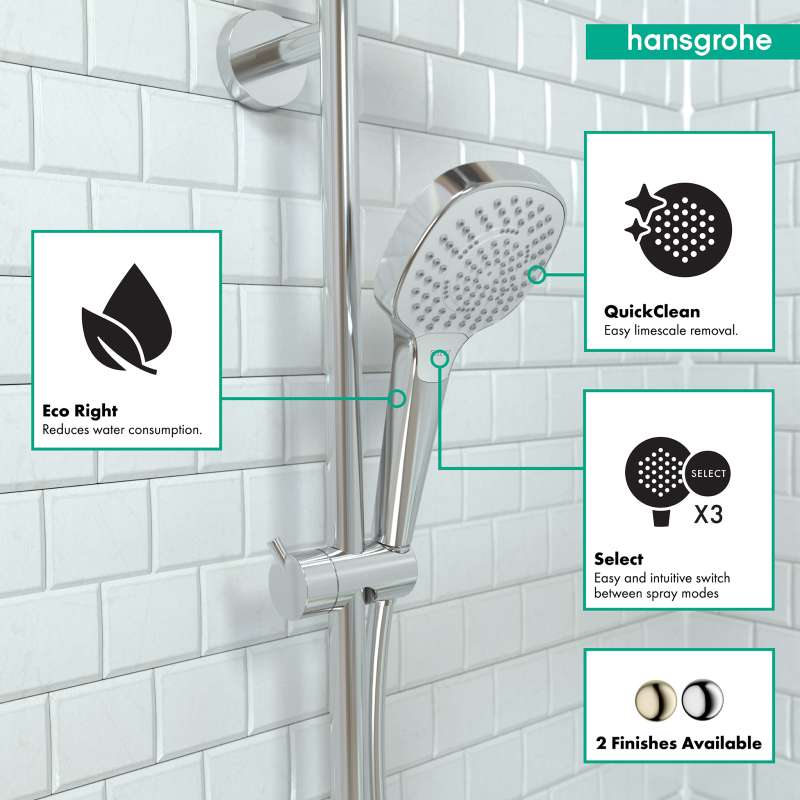 - Limescale can be easily wiped off the silicone nozzles on the shower head (QuickClean).
