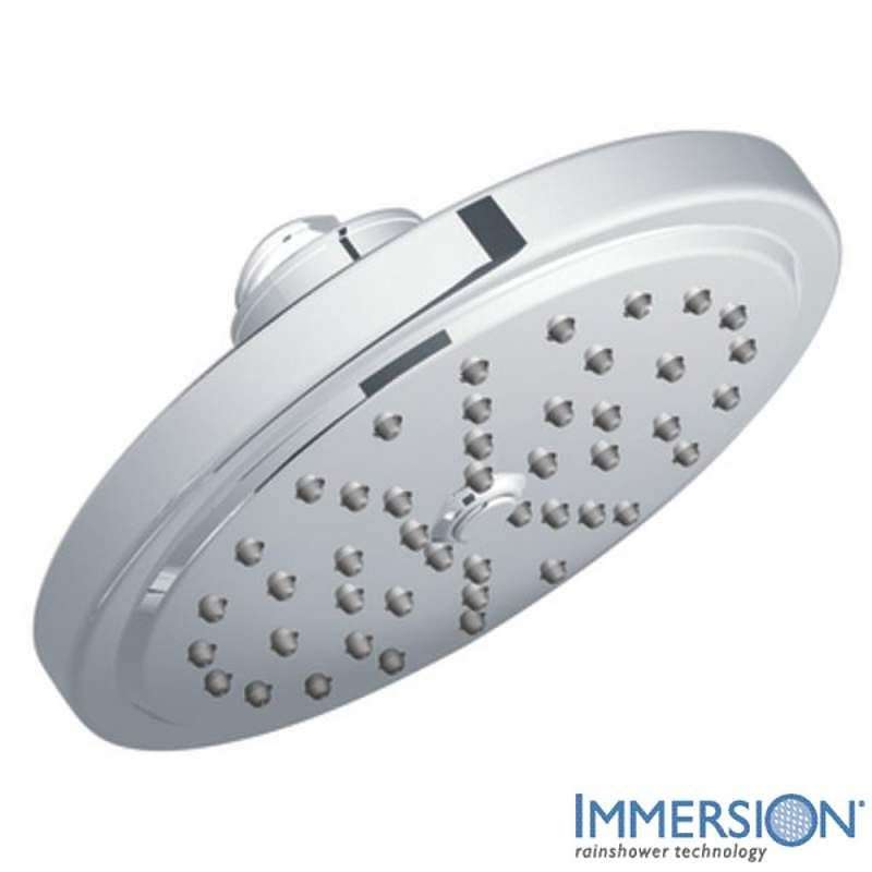 - Moen's advanced, self-pressurizing Immersion rainshower technology channels water through the showerhead with three times more spray power than most rainshowers