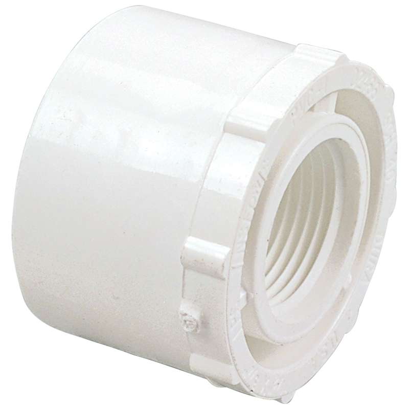 The NIBCO PVC Schedule 40 bushing features a male spigot x female NPT threaded connection and provides a means for reducing the size of the line. The PVC Schedule 40 bushing is used in cold water pressure distribution systems including irrigation, pool and spa, potable water and chilled water applications. Please refer to NIBCO technical data sheets and catalogs for engineering and installation information. Polyvinyl chloride (PVC) is the most frequently specified of all thermoplastic materials because of its light weight, durability and cost-effectiveness. PVC Schedule 40 is easy to install and is joined by solvent cementing or threading. PVC fittings exhibit high corrosion and chemical resistance and will not rust, scale, pit or corrode. NIBCO plastic fittings are backed by a 5-year limited warranty. Because of its longstanding reputation for innovation and precision in design and manufacturing, NIBCO is the preferred brand in the industry.