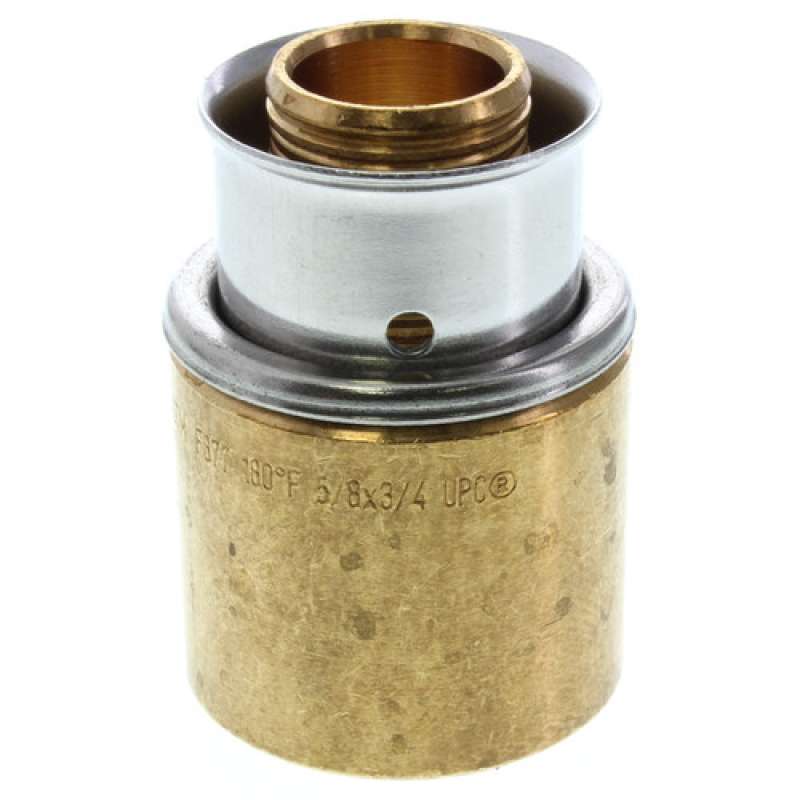 Viega Copper tubing adapters to press connect PEX tubing to copper tubing with attached sleeve.