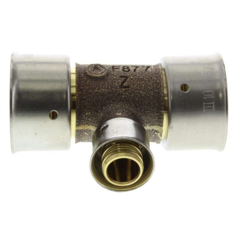 Viega's new Zero Lead bronze material still has superior dezincification properties as compared to standard bronze press fittings and will carry the same trusted listings required for potable water use. Viega selects top quality materials such as zero lead bronze, Eco Brass, stainless steel, and durable plastics providing the basis for the very highest standards of quality that Viega is known for. Use these PEX Press tees to join ViegaPEX or FostaPEX tubing. Dimensions = (end x end x middle).