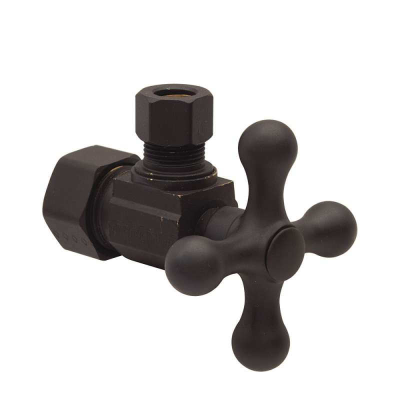 - 1/2 in. Nom Comp Inlet x 3/8 in. O.D. Comp Outlet 1/4-Turn Angle Ball Stop with Cross Handle