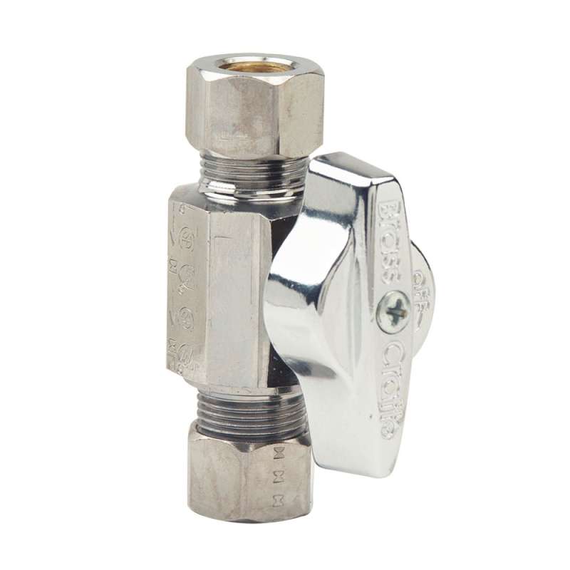 - 1/4 in. Nom Comp Inlet x 3/8 in. OD Comp Outlet 1/4-Turn Straight Ball Stop