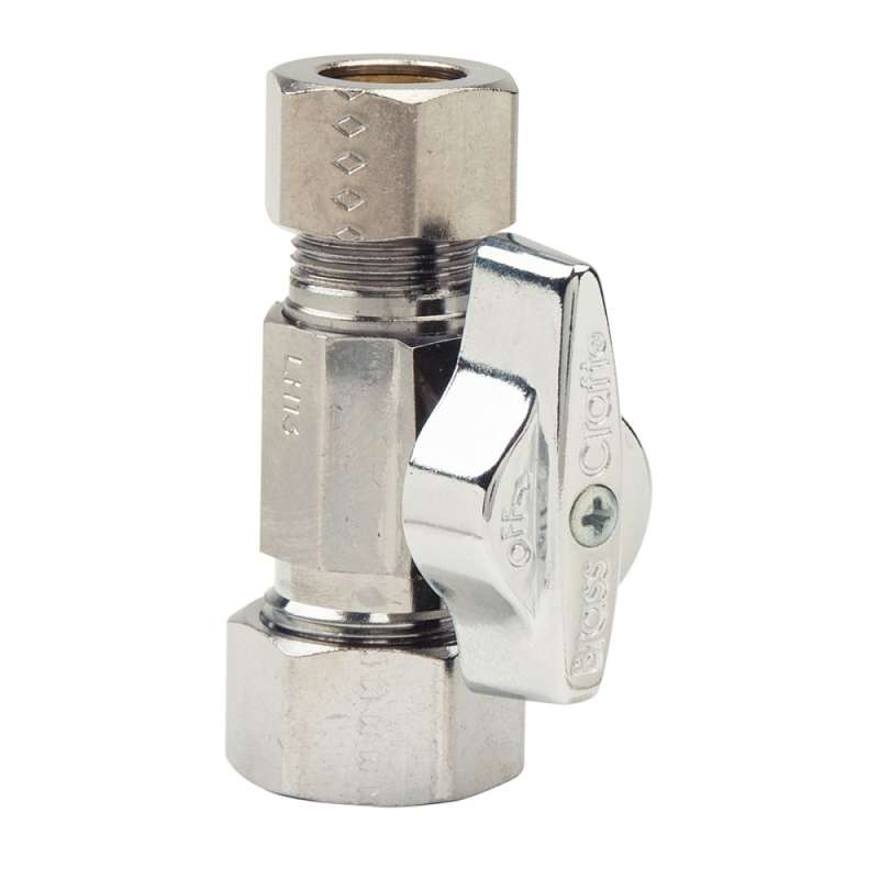 - 1/2 in. Nom Comp Inlet x 1/2 in. OD Comp Outlet 1/4-Turn Straight Ball Stop