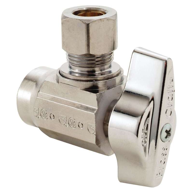 - 1/2 in. Nom Sweat Inlet x 3/8 in. OD Comp Outlet 1/4-Turn Angle Ball Stop