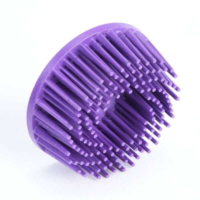 Scotch-Brite™ Roloc™ Body Man’s Bristle Disc is made with stiff polymer bristles that are spaced out and form a radial pattern for optimum load resistance. The disc will not get clogged by debris, making it a good match for cleaning on high-loading substrates and great for removing rubberized undercoating, seam sealer, rust and paint. A Good Match for Soft and Hard Metals Alike Under normal use, the flexible bristles on Scotch-Brite™ Roloc™ Body Man's Bristle Disc remain safely in place and can achieve the desired finish. Combining 3M™ Ceramic Abrasive Grain with polymer bristles make this disc a good match for soft and hard metals alike. The springy and responsive design of the bristles helps prevent gouging of the substrate, but the sharp abrasive mineral and durable polymer blend will still cut efficiently. Operators may use Scotch-Brite™ Roloc™ Body Man's Bristle Disc on a versatile range of metals including aluminum, brass, bronze, carbon steel, cast iron and stainless steel. 3M™ Ceramic Abrasive Grain Enhances Abrasive Cut Rate and Durability The 3M™ Ceramic Abrasive Grain that is used in Scotch-Brite™ Roloc™ Body Man's Bristle Disc is a unique aluminum oxide blend that's engineered to fracture frequently.Through a proprietary process, the grain is engineered to be tougher and harder than regular aluminum oxide, so it has enhanced cut-rate and durability. The fast and sharp cutting action of 3M™ Ceramic Abrasive Grain alleviates the amount of manual pressure needed to efficiently abrade the surface. It's a great match for applications like cleaning, paint stripping and the removal of coatings,sealants and rust. Roloc™ Attachment for Easy Disc and Tool Assembly The small size and portability of Scotch-Brite™ Roloc™ Body Man's Bristle Disc makes it well suited for hard to-reach-areas. Additionally the 3M Roloc™ attachment and disc pad assembly makes changeouts between discs even easier. It locks securely with 1/2 turn on and 1/2 turn off. The 3M Roloc Disc Pad Assembly is designed to fit a variety of tools with or without collets or chucks and is ideal for use on right angle or straight shaft air tools. Superior Load Resistance Unlike conventional steel-wool abrasives, Scotch-Brite™ Roloc™ Body Man's Bristle Disc is made with polymer bristles that contain no wire filaments.The radial layout and spacing between the bristles was purposefully engineered to maximize load resistance. Spacing between bristles allows unwanted swarf to escape, so the abrasive does not get clogged with debris and the mineral can keep cutting sharper, longer. Additionally, the strong polymer blend that makes up the bristles is stiff and durable, so it adds even more longevity to the disc's service life. Trust Scotch-Brite™ Roloc™ Body Man's Bristle Disc for those substrates that call for superior load resistance.