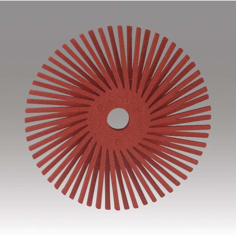 Scotch-Brite™ Radial Bristle Disc, using proprietary 3M™ Ceramic Abrasive Grain and molded, flexible bristles, provides more surface contact than wire brushes and maintains abrasive property throughout the life of the disc. This fast-running disc removes paint, stains, adhesives, weld burns, rust, heavy oxides, and surface contaminants from large areas. Under normal use, the flexible bristles on the Scotch-Brite™ Radial Bristle Disc remain safely in place and can achieve the desired finish using light pressure. We designed our disc to last longer than wire and other abrasive discs and works well on aluminum, brass, bronze, carbon steel, cast iron, stainless steel, and other metals; and is used for general industrial, aerospace, automotive, metalworking, transportation, and automotive applications. 3M™ ceramic aluminum oxide blend is a ceramic mineral designed using a proprietary process to enhance toughness and hardness of the grain for a higher level performance. Ceramic aluminum oxide blend is engineered to fracture frequently and surpasses aluminum oxide abrasives in both cut-rate and durability. Perfect for moderate to heavy stock removal as well as finishing, ceramic abrasives are built to cut fast and handle intense heat and stress applications. Scotch-Brite™ abrasives are unique surface conditioning products with abrasives incorporated into non-woven fiber matrix. Combining abrasives and non-woven material creates an abrasive system that delivers consistent results for the life of the product. The open-web material runs cool and is load resistant, which keeps the abrasive minerals cutting at high performance by limiting clogging of the fibers.