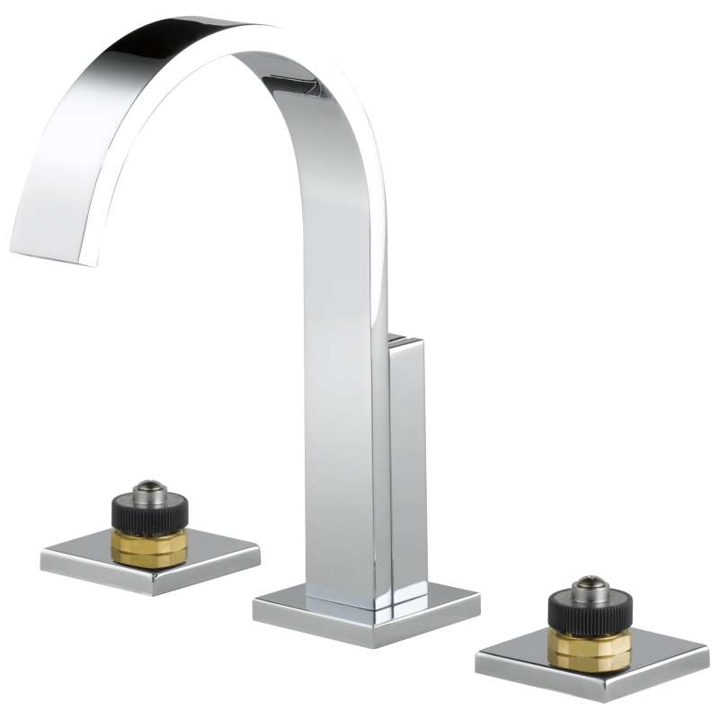 The soft, flowing curves of the Siderna Bath Collection mimic the movement of cascading waterfalls, while stark, crisp lines evoke modern sophistication. Customize the design with your choice of solid metal or glass accent handles. Combining geometric structure with natural inspiration, Siderna represents the merging of two very different worlds. Its soft, flowing curves mimic the movement of cascading waterfalls, while its stark, crisp lines ooze modern sophistication. Complies with: ASME A112.18.1 / CSA B125.1, ASME A112.18.2 / CSA B125.2, Indicates compliance to ICC/ANSI A117.1, EPA WaterSense, Verified compliant with .25% weighted average Pb content regulations.