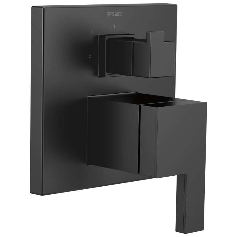 Delta Pressure balance valve with integrated 3-function diverter trim has single-function pressure balance cartridge. For use with multichoice universal integrated shower diverter rough. Valve handle adjusts temperature. Red/Blue temperature markings. Diverter has 2 individual positions and 1 shared position. 2 individual positions, no shared positions. 1/2" universal inlets/outlets. RP100670 extension kit extends rough installation up to 1".