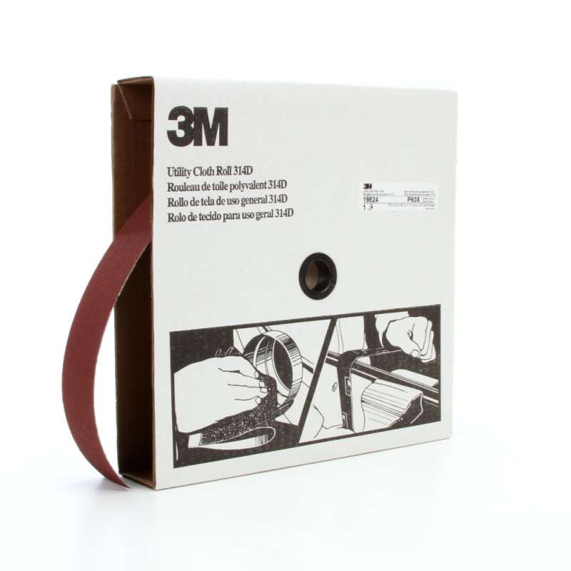 3M™ Utility Cloth Roll 314D provides light-weight cloth sanding strips used for hand sanding in many different applications. Constructed with aluminum oxide abrasive, these utility rolls come in a range of grades for common applications such as deburring, blending and repairing metal finishes, rust or other contaminant removal, and surface preparation for paints and coatings. The desired length of the strip can be torn from the roll for a specific application. Most grades have a light, J-weight cloth backing that provides the flexibility needed to conform to circular edges, angles, or other contours. Rolls in grades P50 or P60 have a slightly stiffer X-weight backing suitable for more coarse sanding applications. Cloth remains durable even when bent or rolled, without tearing or shelling, but strips can be torn by hand when a smaller piece is needed, without compromising the sanding surface. Aluminum oxide is a popular choice among industrial professionals because of its fast cut-rate and long life. This mineral makes a tough, durable abrasive that self-fractures to expose fresh cutting edges, whereas traditional natural abrasives dull more quickly. Aluminum oxide is suitable for a wide variety of materials in both woodworking and metalworking, including ferrous alloys. Aluminum oxide abrasive can be used on ferrous and non-ferrous metals, wood, and plastic.
