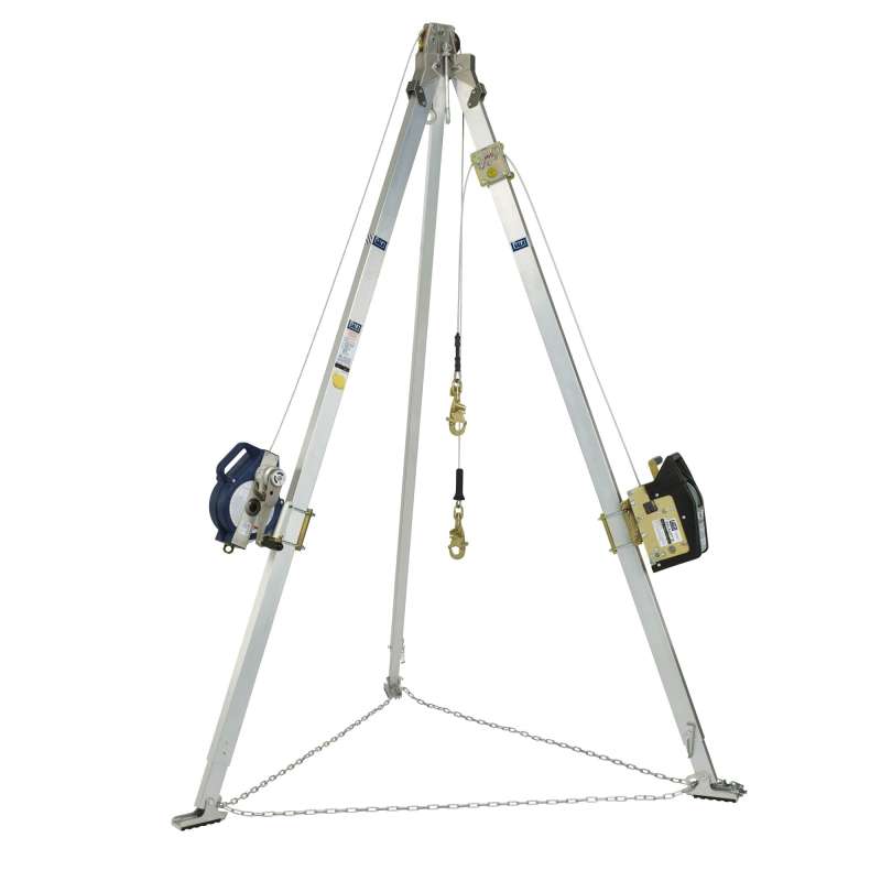 3M™ DBI-SALA® Aluminum Tripods can be set up by one worker and are portable for transporting from one location to another. They can accommodate a variety of winches and fall arrest devices and feature locking legs, detent pin style adjustment, quick-mount mechanical device bracket, safety chain and padded feet to minimize movement.