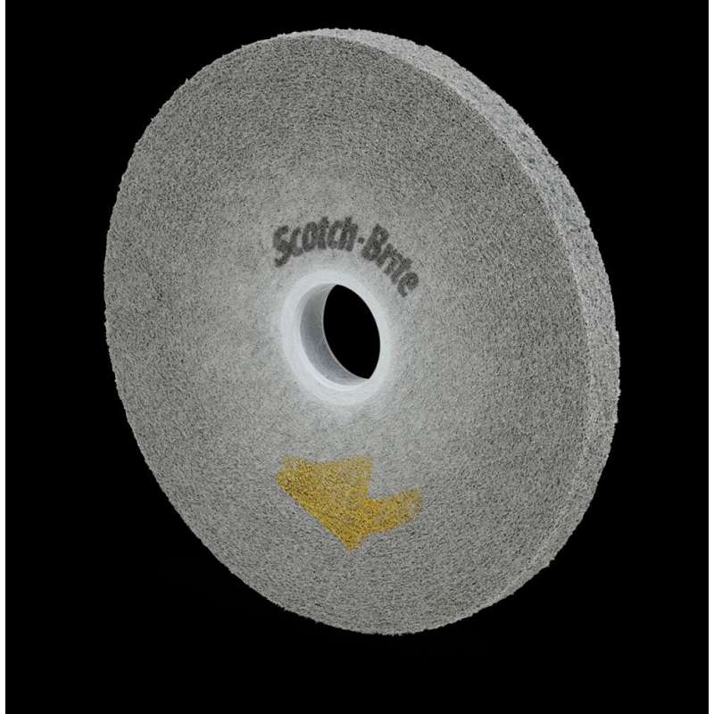 The Scotch-Brite™ EXL PRO Deburring Wheel excels at deburring and is an ideal fit for off-hand operations. It provides 30-50% longer life than the original EXL wheel, without sacrificing a smooth feel and conformability. Designed for optimal operator comfort, the EXL PRO wheel requires less pressure for a faster cut, making this the wheel of choice for premium performance. Exceptional Cut and Longevity, with Less Pressure The hard density Scotch-Brite™ EXL PRO Deburring Wheel quickly deburrs stamped or laser cut parts, finishes after belt sanding, and polishes all types of metals, composites and glass. It not only achieves a super fast cut, but leaves a smooth, clean surface without smearing, reducing your need for additional cleanup and preparation. Convolute construction and clean, uniform wear keep the wheel running smoothly and produce a professional finish with less pressure, minimizing fatigue. Scotch-Brite PRO material runs cool and keeps fresh abrasives continuously exposed, making it a superior choice on heat sensitive substrates. The toughness of the wheel extends its service life to keep your productivity higher and costs lower. Silicon Carbide for a Fine Finish The Scotch-Brite™ EXL PRO Deburring Wheel contains silicon carbide abrasive mineral, a synthetic mineral that is very sharp and commonly used for low-pressure applications such as paint prep. While it breaks down faster than aluminum oxide, it produces a superior finish. The Scotch-Brite™ Advantage Non-woven technology makes Scotch-Brite™ industrial abrasives unique. A combination of fiber strands, resin, and abrasive mineral forms a thick, open web. The spring-like nature of the fibers responds to contours and effectively removes unwanted burrs, soils and contaminants while maintaining the geometry of the workpiece, which in turn reduces rework and boosts productivity. Gaps in the web allow swarf to escape, so debris does not clog the mineral. Fibers in the web continually break down with use to reveal fresh mineral for exceptional consistency, superior cut performance and extremely long service life. Scotch-Brite products may enhance productivity while reducing the need for cleaning chemicals and wire brushes. From aesthetic finishing to weld blending, deburring and more, Scotch-Brite abrasives work fast and deliver consistent results, part after part.