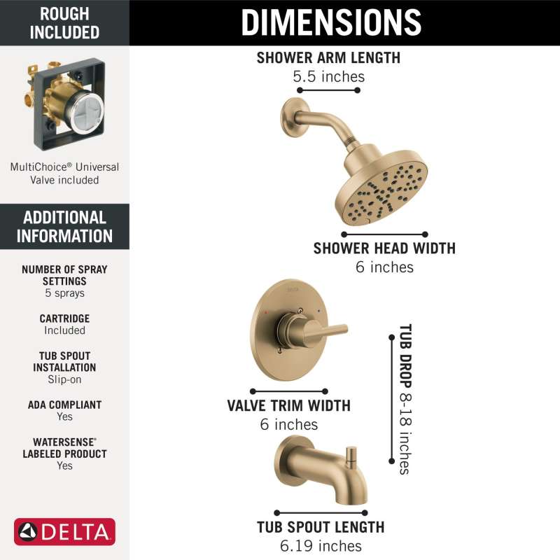 • Complete unit includes trim and multichoice universal valve with rough-in.