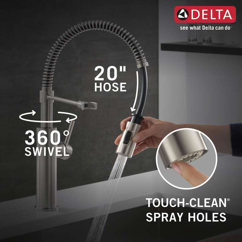 Delta magnatite docking uses a powerful integrated magnet to set your pull down sprayer precisely into place and hold it there so it stays docked when not in use. Delta spotshield technology helps to keep your kitchen faucet cleaner, longer by resisting water spots and fingerprints. Keep your space spotless with spotshield technology, available across a variety of finishes for the kitchen and bath. Delta kitchen faucets with diamond seal technology perform like new for life with a patented design which reduces leak points, is less hassle to install and lasts twice as long as the industry standard. You can install with confidence, knowing that delta kitchen faucets are backed by our lifetime limited warranty.