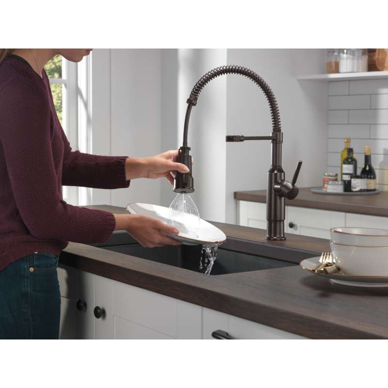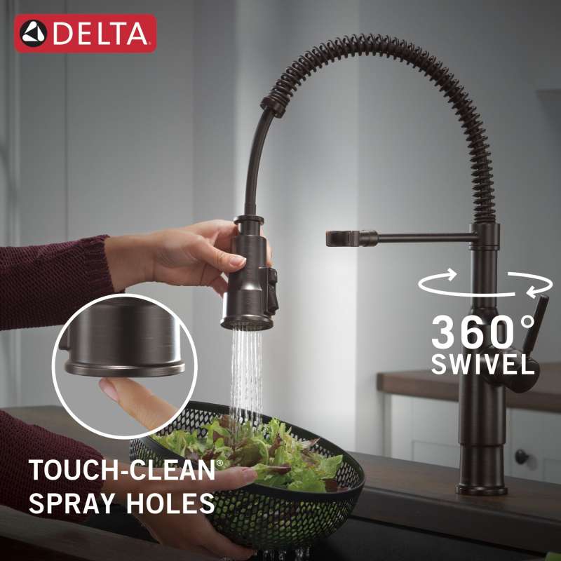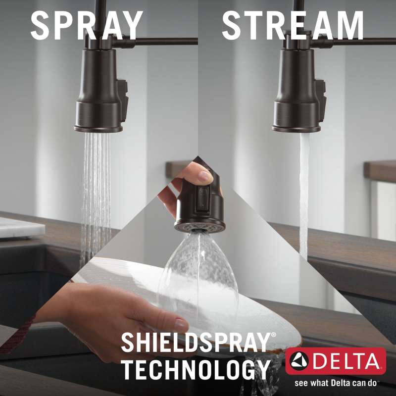 Delta magnatite docking uses a powerful integrated magnet to set your pull down sprayer precisely into place and hold it there so it stays docked when not in use. Delta shieldspray technology cleans with laser-like precision while containing mess and splatter. A concentrated jet powers away stubborn messes while an innovative shield of water contains splatter and clears off the mess, so you can spend less time soaking, scrubbing and shirt swapping. Delta kitchen faucets with diamond seal technology perform like new for life with a patented design which reduces leak points, is less hassle to install and lasts twice as long as the industry standard. You can install with confidence, knowing that delta kitchen faucets are backed by our lifetime limited warranty.