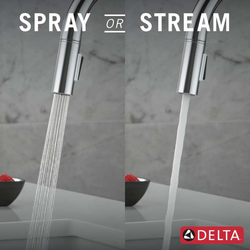 the nicoli collection balances minimalist design trends with an elevated, sleek look that easily ADApts to change as your style evolves. Delta magnatite docking uses a powerful integrated magnet to set your pull down sprayer precisely into place and hold it there so it stays docked when not in use. Kitchen sink faucets with touch-clean spray holes allow you to easily wipe away calcium and lime buildup with the touch of a finger. You can install with confidence, knowing that delta kitchen faucets are backed by our lifetime limited warranty.