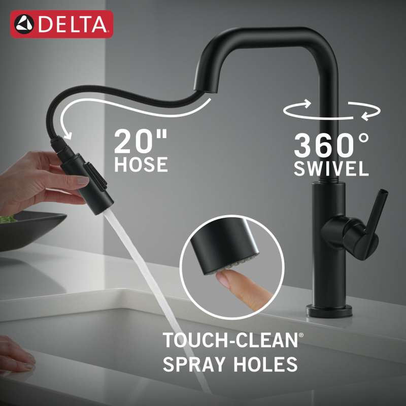 The nicoli collection balances minimalist design trends with an elevated, sleek look that easily ADApts to change as your style evolves. Delta magnatite docking uses a powerful integrated magnet to set your pull down sprayer precisely into place and hold it there so it stays docked when not in use. Kitchen sink faucets with touch-clean spray holes allow you to easily wipe away calcium and lime buildup with the touch of a finger. You can install with confidence, knowing that delta kitchen faucets are backed by our lifetime limited warranty.