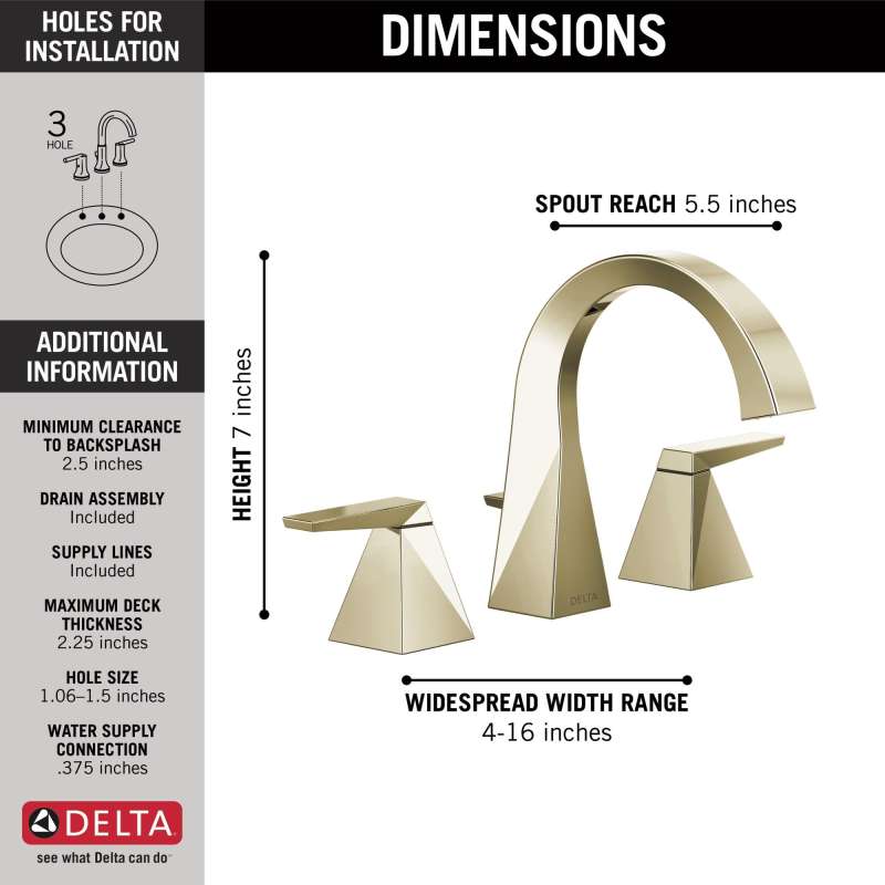 - Fits 3-hole 4-16 in. widespread installations.