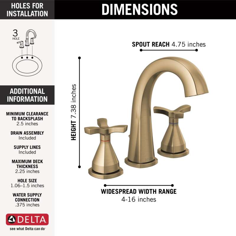 With subtly upturned spout and handles, the stryke bath collection radiates confidence and composure with an assured stature and ascending contours. Designed to be integral to both your bathroom’s everyday use and personalized style, stryke's robust design breathes intrigue into any space in your home. Delta faucets with diamond seal technology perform like new for life with a patented design which reduces leak points, is less hassle to install and lasts twice as long as the industry standard. You can install with confidence, knowing that delta faucets are backed by our lifetime limited warranty. Delta watersense labeled faucets, showers and toilets use at least 20% less water than the industry standard—saving you money without compromising performance.