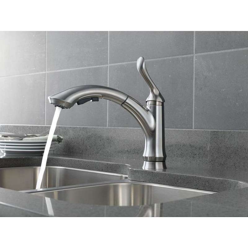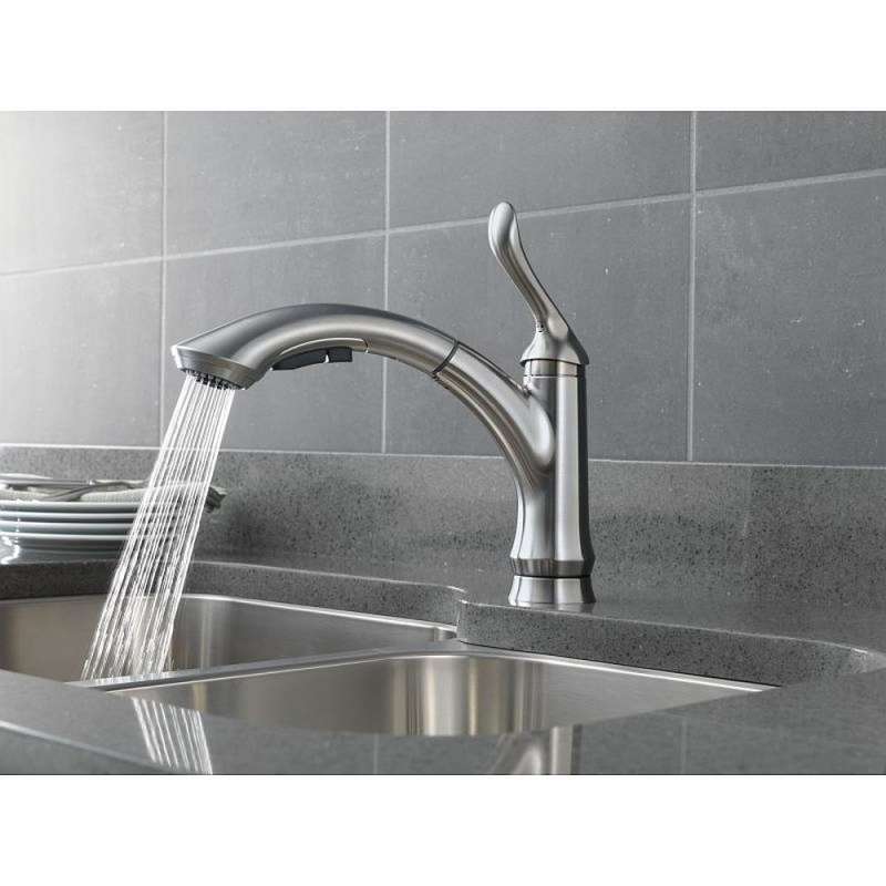 - Pull-out spout swivels 120-degree for added convenience