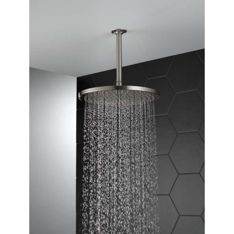 - For use with ceiling-mounted or extended wall-mounted shower arm applications