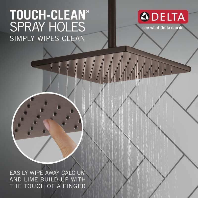 - Soft, rubber Touch-Clean spray holes allow you to easily wipe away calcium and lime build-up from the spray face of your shower head and hand shower with the touch of a finger