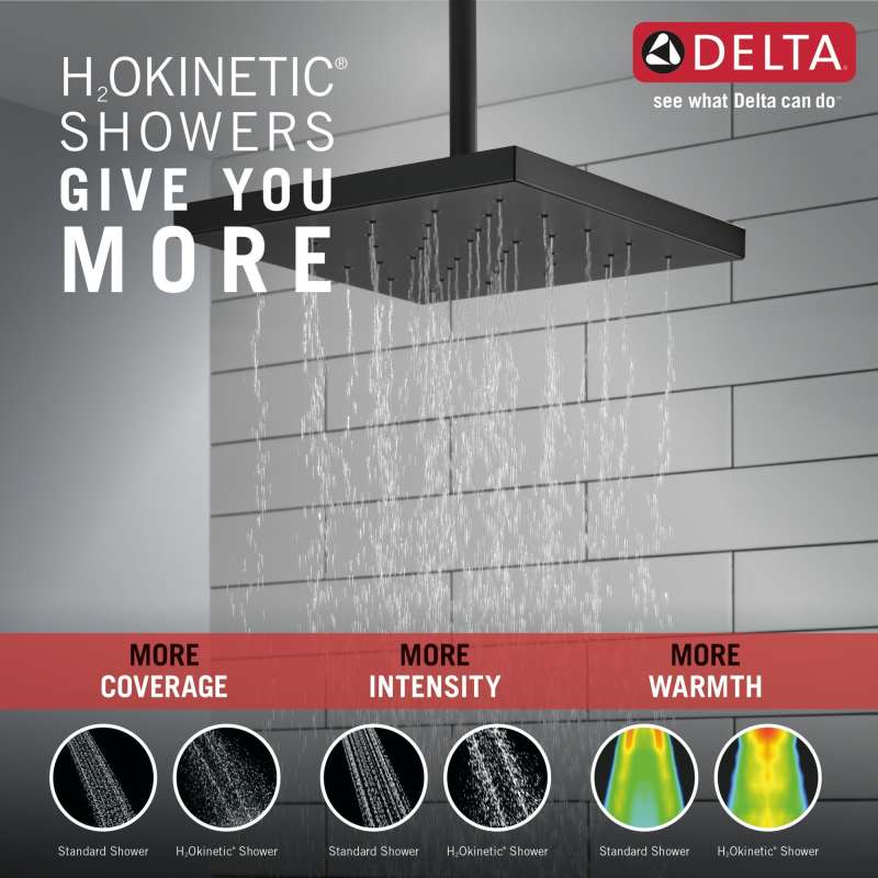 - H2Okinetic Shower technology sculpts water into a unique pattern, forming a powerful drench spray