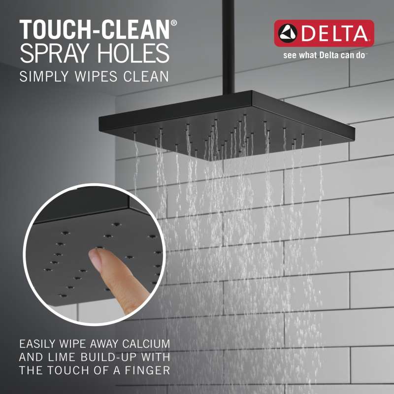 Replacing your shower head is one of the quickest, simplest upgrades you can make to your shower. Our shower heads feature a wide range of styles and innovations, and install in less than 20 minutes - no special tools required. UltraSoak Spray mimics dense natural rainfall to provide an intensely saturating shower. Using advanced water-sculpting chips, they generate a cascade of water drops that saturate and soothe in a shower that feels like more water. Step into the storm and step back out feeling relaxed and rejuvenated. While other products may gather unsightly mineral build-up over time, Delta soft rubber Touch-Clean spray holes allow any mineral residue to simply be wiped away for an instantly refreshed look – with no need for soaking or the aid of chemical cleaners.