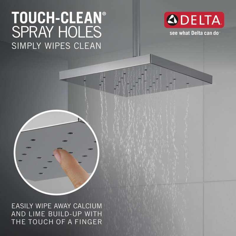 • Soft, rubber Touch-Clean spray holes allow you to easily wipe away calcium and lime build-up from the spray face of your shower head and hand shower with the touch of a finger