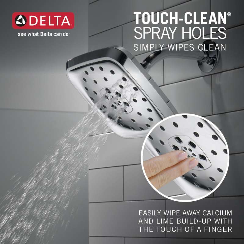 • Soft, rubber Touch-Clean spray holes allow you to easily wipe away calcium and lime build-up from the spray face of your shower head and hand shower with the touch of a finger