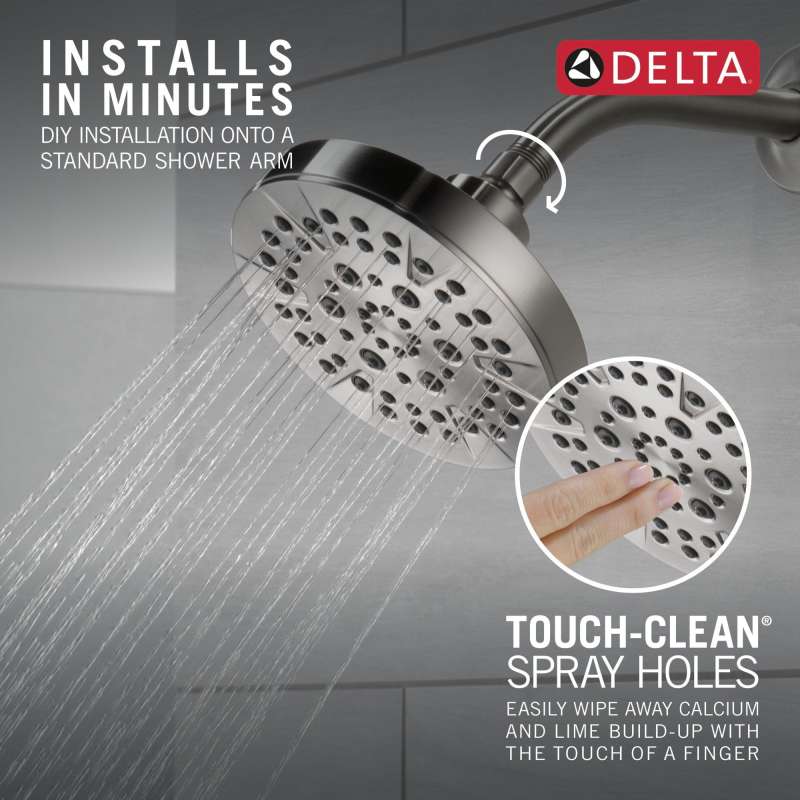 Replacing your shower head is one of the quickest, simplest upgrades you can make to your shower. Our shower heads feature a wide range of styles and innovations, and can be installed without special tools. All you need is standard plumber’s tape, making it an easy DIY project. While other products may gather unsightly mineral buildup over time, Delta soft rubber Touch-Clean spray holes allow any mineral residue to simply be wiped away for an instantly refreshed look — with no need for soaking or the aid of chemical cleaners. Delta WaterSense labeled faucets, showers and toilets use at least 20% less water than the industry standard — helping you save water without compromising performance. You can install with confidence, knowing Delta products are backed by our Limited Lifetime Warranty.