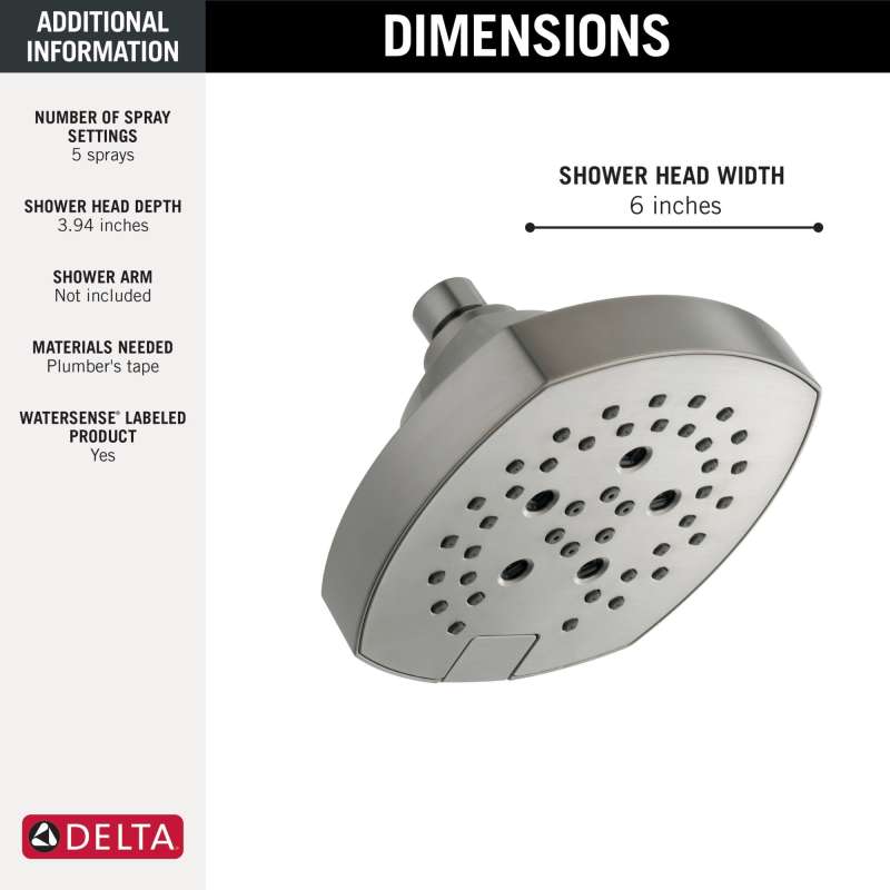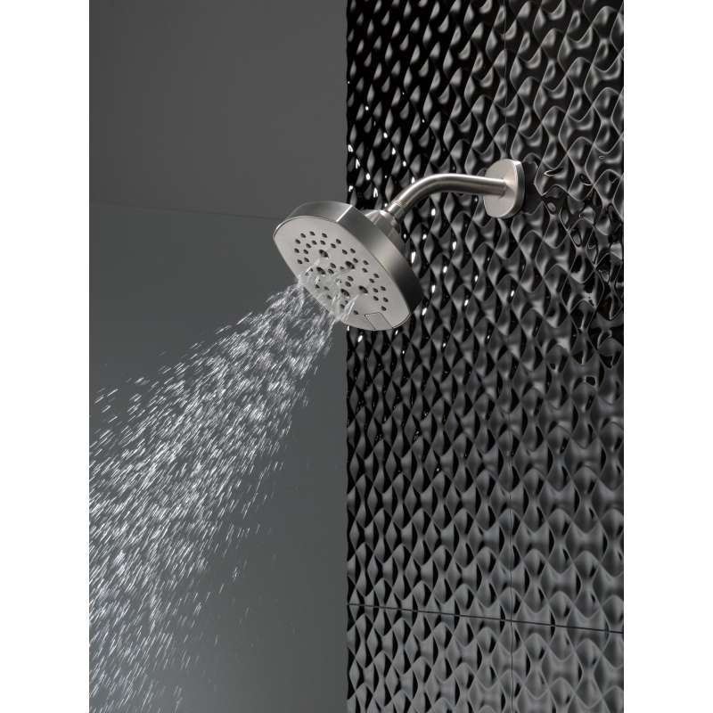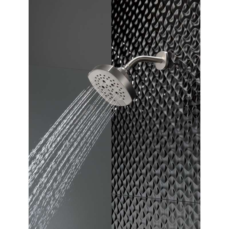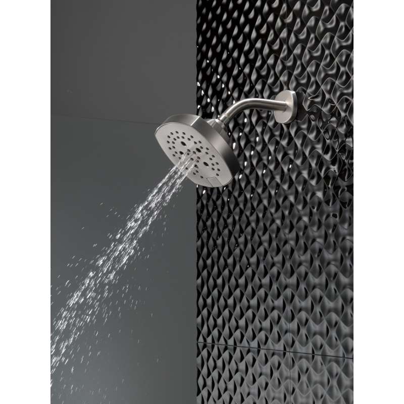 The Stryke Bath Collection radiates confidence and composure with an assured stature and ascending contours. Designed to be integral to both your bathrooms everyday use and personalized style, Stryke's robust design breathes intrigue into any space in your home. Delta H2Okinetic Power Drench Showers look different because they are different. H2Okinetic showers are powered by an innovative technology that sculpts the water into a unique wave pattern, giving you the feeling of more water without using more water and creating a shower with more warmth, coverage, and intensity. The pause setting gives you ample space for shaving, lathering and other shower tasks, without worrying about overspray or water waste. This spray setting helps you conserve water, so you can worry less about depleting your supply of hot water - and you help the environment too. Replacing your shower head is one of the quickest, simplest upgrades you can make to your shower. Our shower heads feature a wide range of styles and innovations, and install in less than 20 minutes - no special tools required. Delta WaterSense labeled showers use at least 20% less water than the industry standard saving you money without compromising performance.