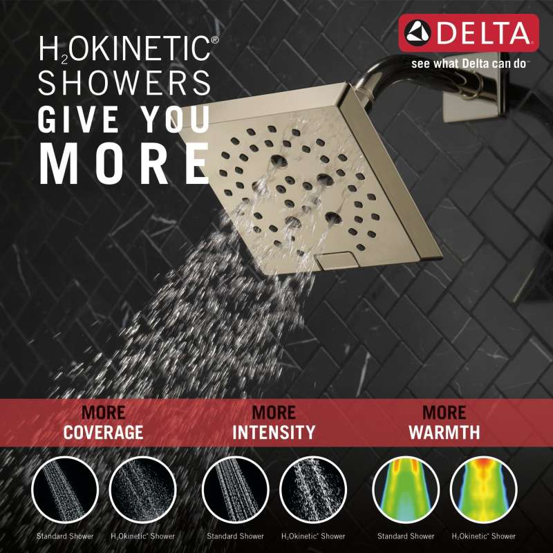 Replacing your shower head is one of the quickest, simplest upgrades you can make to your shower. Our shower heads feature a wide range of styles and innovations, and can be installed without special tools. All you need is standard plumber’s tape, making it an easy DIY project. Delta H2Okinetic Showers with PowerDrench Spray look different because they are different. H2Okinetic showers are powered by an innovative technology that sculpts the water into a unique wave pattern, giving you the feeling of more water and water pressure. Delta WaterSense labeled faucets, showers and toilets use at least 20% less water than the industry standard — helping you save water without compromising performance. You can install with confidence, knowing that Delta showers are backed by our Lifetime Limited Warranty.