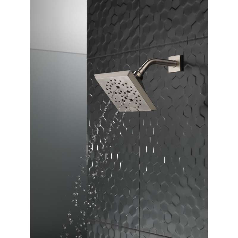 • 52664-KS-PR Universal Showering Components H2Okinetic 5-Setting Angular Modern Raincan Shower Head, Lumicoat Black Stainless Lumicoat Black Stainless