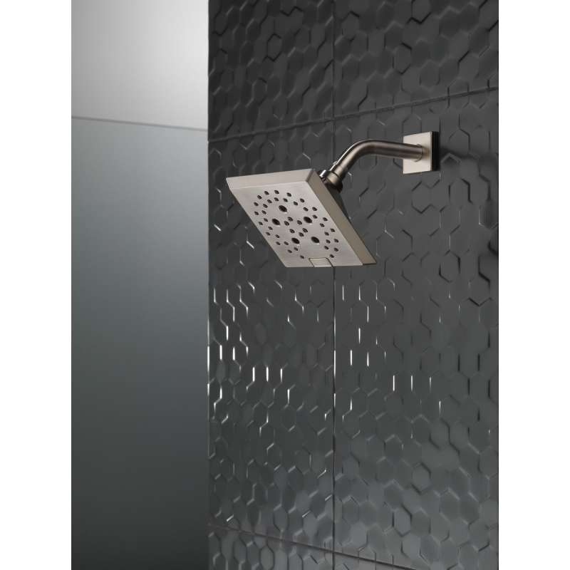 • 52664-SS-PR Universal Showering Components H2Okinetic 5-Setting Angular Modern Raincan Shower Head, Lumicoat Stainless Lumicoat Stainless