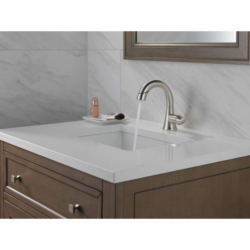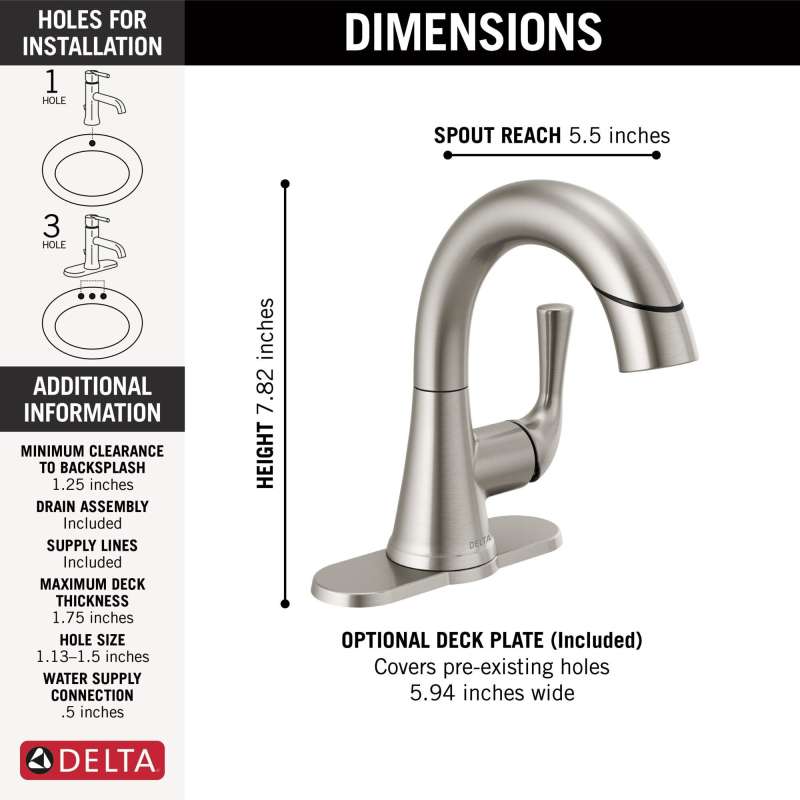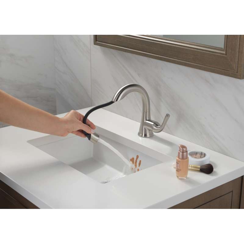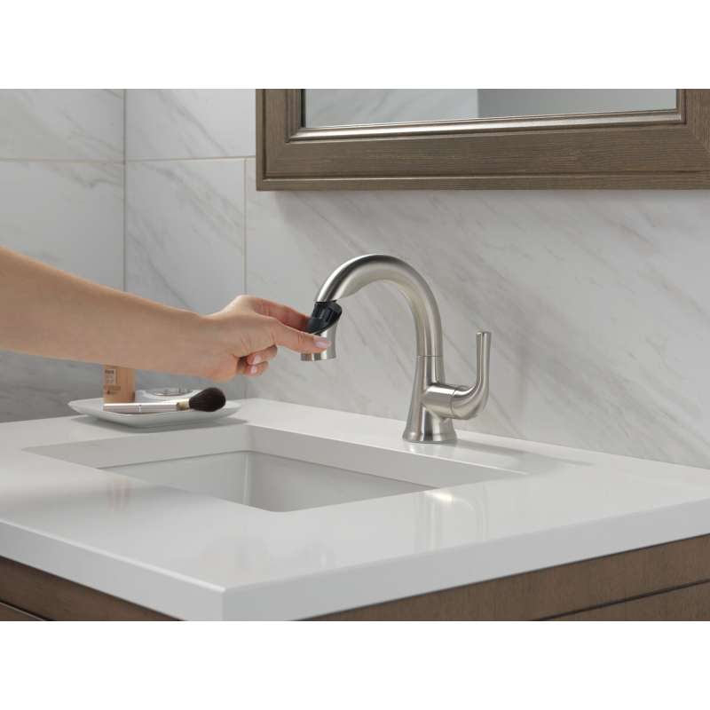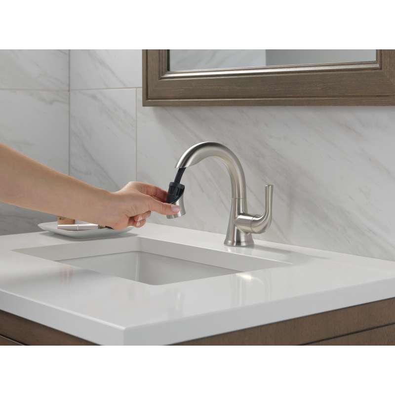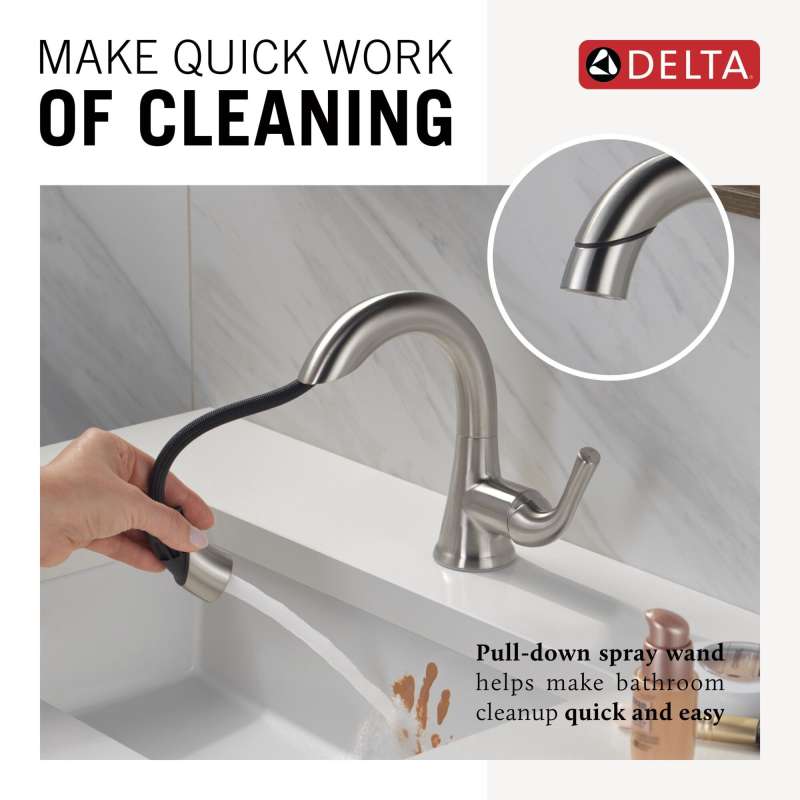 The stretched feminine form and unbroken lines of the kayra bath collection create a clean, flowing design with an integrated pull-down spray wand that simplifies cleanup. Delta watersense labeled faucets use at least 20% less water than the industry standard—saving you money without compromising performance. You can install with confidence, knowing that delta faucets are backed by our lifetime limited warranty.