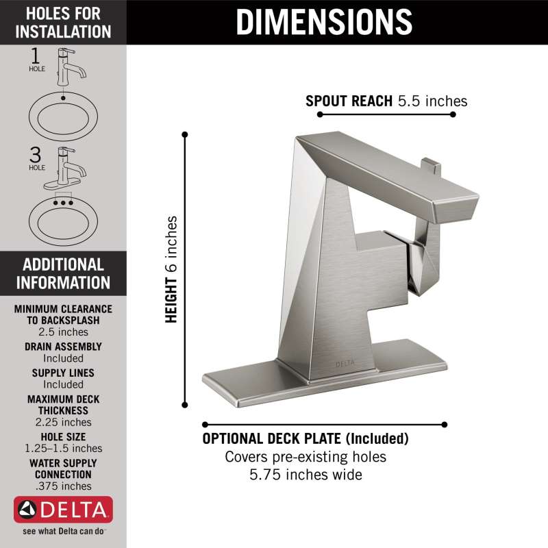 The prismatic faceting of the trillian bath collection is an evolution of modern style that creates an edgy look which catches the light as well as the eye. Delta faucets with diamond seal technology perform like new for life with a patented design which reduces leak points, is less hassle to install and lasts twice as long as the industry standard. Delta watersense labeled faucets, showers and toilets use at least 20% less water than the industry standard — helping you save water without compromising performance. You can install with confidence, knowing that delta faucets are backed by our lifetime limited warranty.