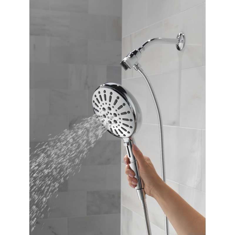 SureDock Magnetic Hand Showers bring reliable docking within reach. An integrated magnet on the back of the hand shower snaps your hand shower into place and holds it there, so it stays docked when not in use and doesn’t droop over time. Delta Lumicoat Finishes easily wipe clean without the need for cleaners or chemicals and are guaranteed to resist water spots and mineral buildup. Using advanced technology, H2Okinetic Showers sculpt water into a unique wave pattern, giving you 3X the coverage of a standard shower head, resulting in a shower that provides more coverage, more warmth and more intensity for a truly drenching shower experience. You can install with confidence, knowing Delta products are backed by our Lifetime Limited Warranty.
