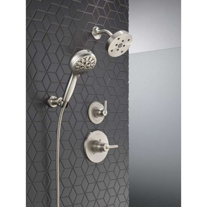 The Delta ProClean Hand Shower cleans shower surfaces at least two times faster than standard sprays, powering off soap scum and shower messes. Perfect for an easy upgrade, the ProClean Hand Shower makes it easier to keep your shower and tile clean and reduce soap scum buildup with regular use. The focused, wide fan spray allows you to quickly clean hard-to-reach places without stepping foot in the shower. Delta Lumicoat Finishes are guaranteed to resist water spots and mineral buildup and easily wipe clean without the need for cleaners or chemicals. The ultra-sleek surface repels liquids, resisting water spots and staying cleaner longer, so your faucet’s most commonly touched areas stay beautiful. Using advanced technology, H2Okinetic showers sculpt water into a unique wave pattern, giving you 3X the coverage of a standard shower head and providing more coverage, more warmth and more intensity for a truly drenching shower experience. You can install with confidence, knowing Delta products are backed by our Lifetime Limited Warranty.