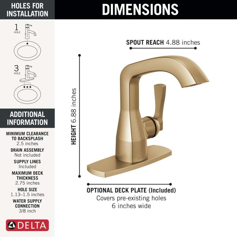 With subtly upturned spout and handles, the stryke bath collection radiates confidence and composure with an assured stature and ascending contours. Delta lumicoat finishes easily wipe clean without the need for cleaners or chemicals and are guaranteed to resist mineral buildup and hard water stains. The ultra-sleek surface repels liquids, resisting water spots and staying cleaner longer, so your faucet stays beautiful. Delta faucets with diamond seal technology perform like new for life with a patented design that reduces leak points, is less hassle to install and lasts twice as long as the industry standard. Watersense labeled faucets use at least 20% less water than the industry standard — helping you save water without compromising performance. You can install with confidence, knowing that delta faucets are backed by our lifetime limited warranty.