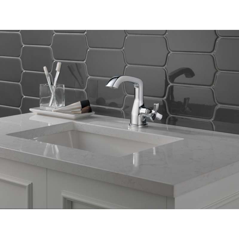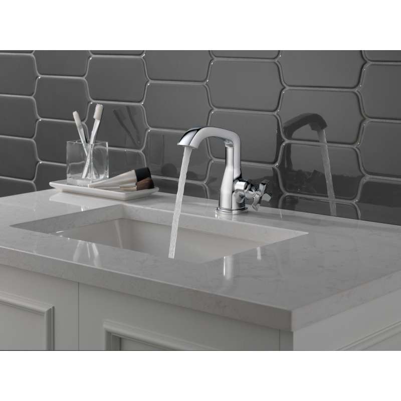 With subtly upturned spout and handles, the stryke bath collection radiates confidence and composure with an assured stature and ascending contours. Designed to be integral to both your bathroom’s everyday use and personalized style, stryke's robust design breathes intrigue into any space in your home. Delta faucets with diamond seal technology perform like new for life with a patented design which reduces leak points, is less hassle to install and lasts twice as long as the industry standard*. You can install with confidence, knowing that delta faucets are backed by our lifetime limited warranty. Delta watersense labeled faucets, showers and toilets use at least 20% less water than the industry standard—saving you money without compromising performance. *Industry standard is based on asme a112.18.1 of 500,000 cycles.
