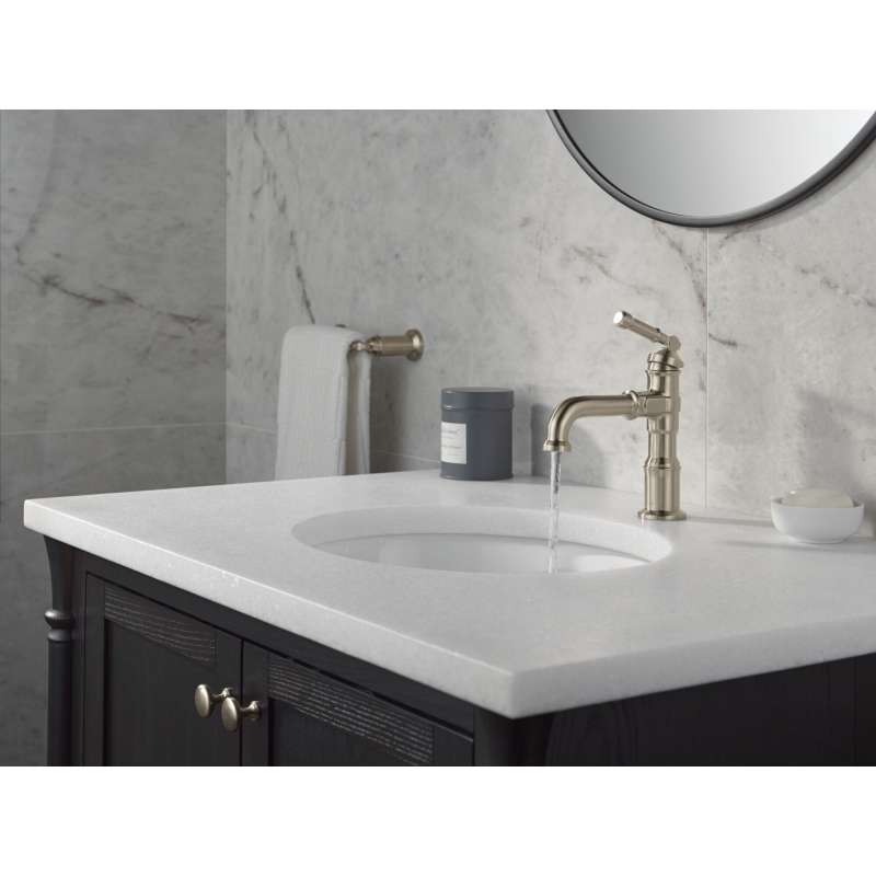 The broderick bath collection is inspired by exposed hardware and the depth of heritage found in traditional design. Styled after the rugged nuts and bolts of machinery, it serves as a true centerpiece in the bathroom. Delta lumicoat finishes easily wipe clean without the need for cleaners or chemicals and are guaranteed to resist mineral buildup and hard water stains. The ultra-sleek surface repels liquids, resisting water spots and staying cleaner longer, so your faucet stays beautiful. Delta faucets with diamond seal technology perform like new for life with a patented design that reduces leak points, is less hassle to install and lasts twice as long as the industry standard. Watersense labeled faucets use at least 20% less water than the industry standard — helping you save water without compromising performance. You can install with confidence, knowing that delta faucets are backed by our lifetime limited warranty.