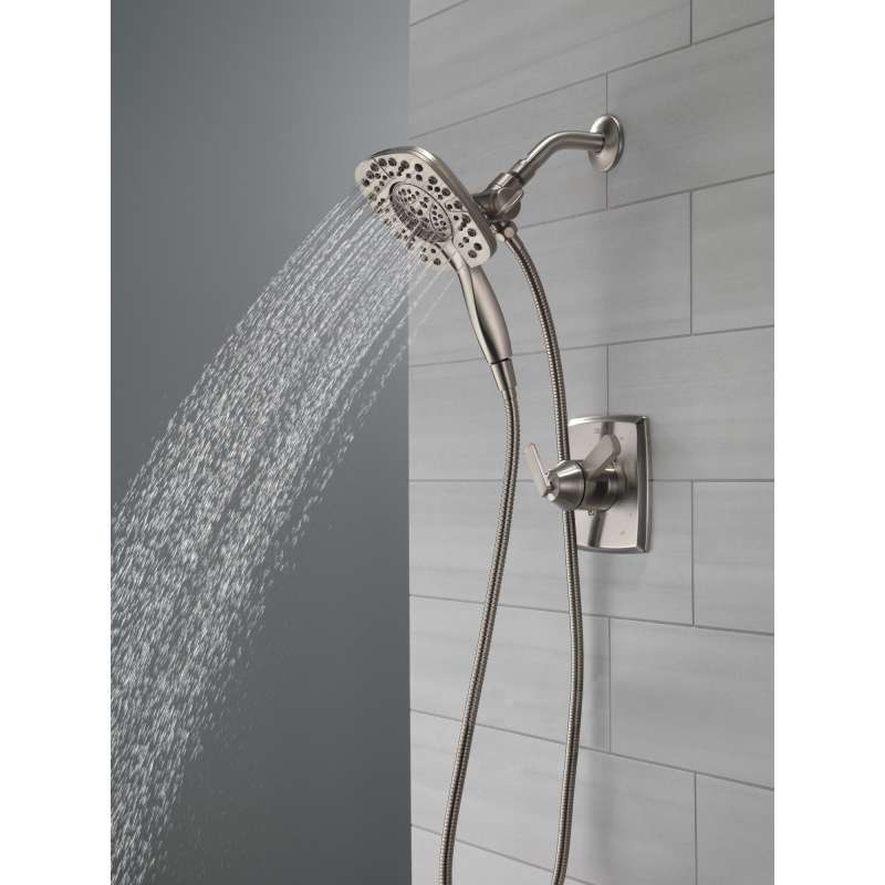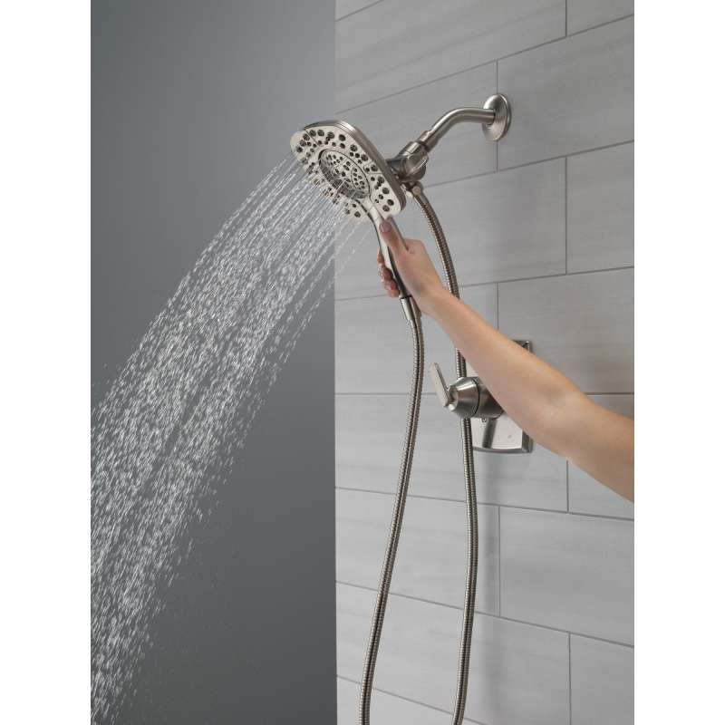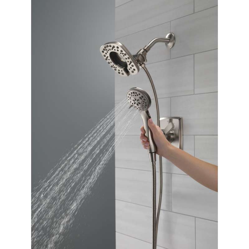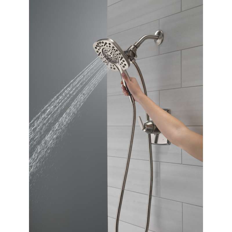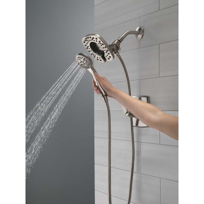 The Delta In2ition Two-in-One Shower features a detachable hand shower which can be used separately from or simultaneously with the shower head. This integrated dual-functionality gives you maximum flexibility without sacrificing warmth, as you can choose to have water streaming from the shower head only, the hand shower only or both the shower head and hand shower at once. While other products may gather unsightly mineral build-up over time, Delta soft rubber Touch-Clean spray holes allow any mineral residue to simply be wiped away for an instantly refreshed look – with no need for soaking or the aid of chemical cleaners. The pause setting gives you ample space for shaving, lathering and other shower tasks, without worrying about overspray or water waste. This spray setting helps you conserve water, so you can worry less about depleting your supply of hot water - and you help the environment too. Delta WaterSense labeled faucets, showers and toilets use at least 20% less water than the industry standard—saving you money without compromising performance.
