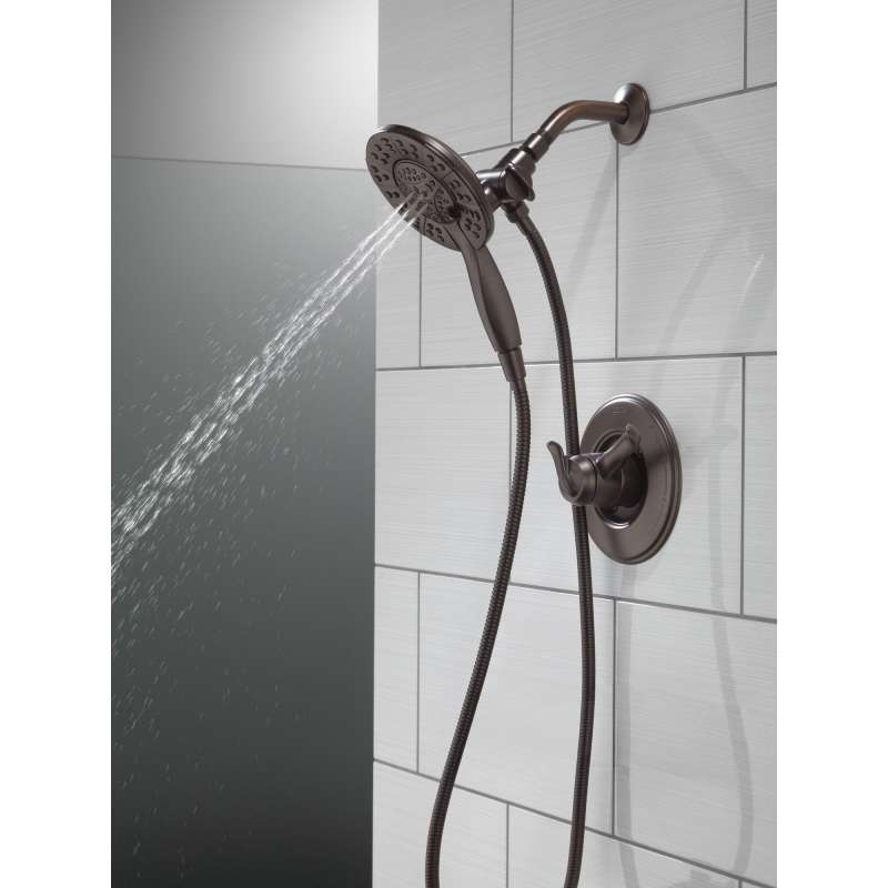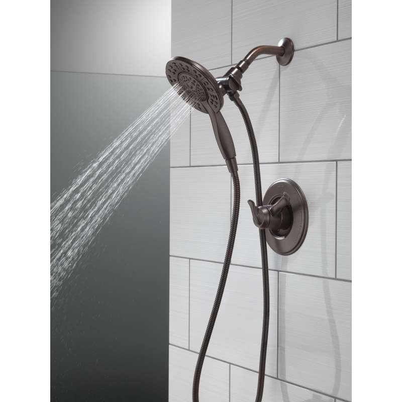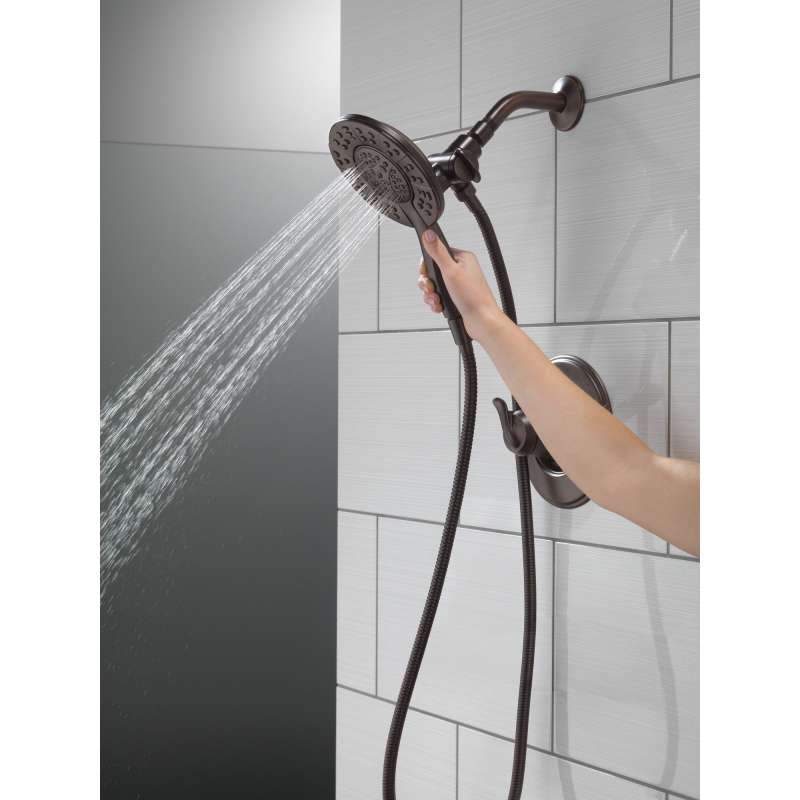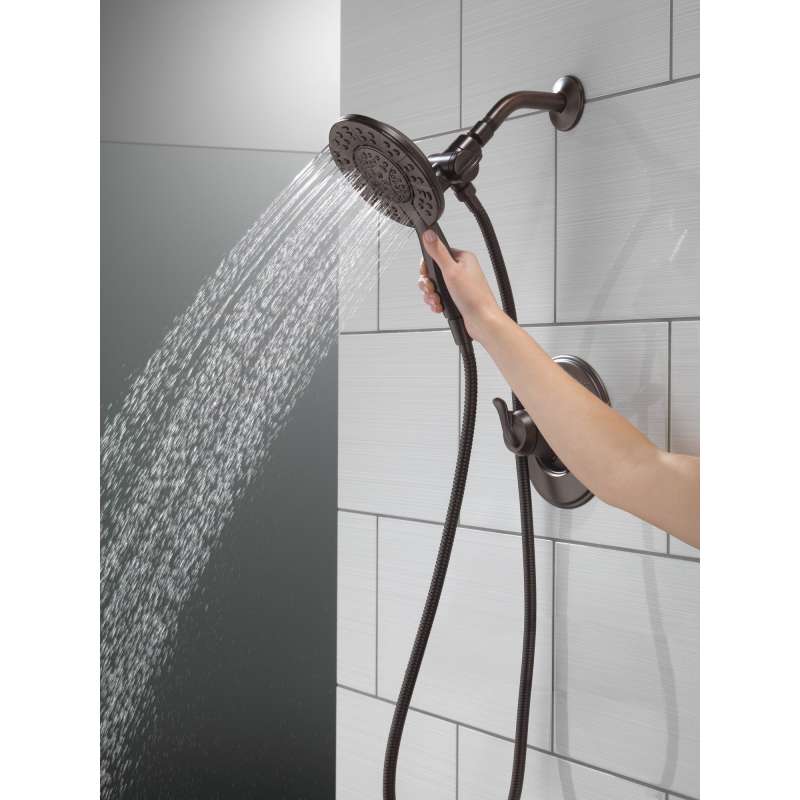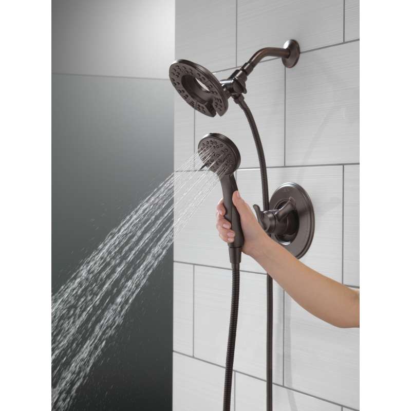 The Delta In2ition Two-in-One Shower features a detachable hand shower which can be used separately from or simultaneously with the shower head. This integrated dual-functionality gives you maximum flexibility without sacrificing warmth, as you can choose to have water streaming from the shower head only, the hand shower only or both the shower head and hand shower at once. While other products may gather unsightly mineral build-up over time, Delta soft rubber Touch-Clean spray holes allow any mineral residue to simply be wiped away for an instantly refreshed look – with no need for soaking or the aid of chemical cleaners. The pause setting gives you ample space for shaving, lathering and other shower tasks, without worrying about overspray or water waste. This spray setting helps you conserve water, so you can worry less about depleting your supply of hot water - and you help the environment too. Delta WaterSense labeled faucets, showers and toilets use at least 20% less water than the industry standard—saving you money without compromising performance.
