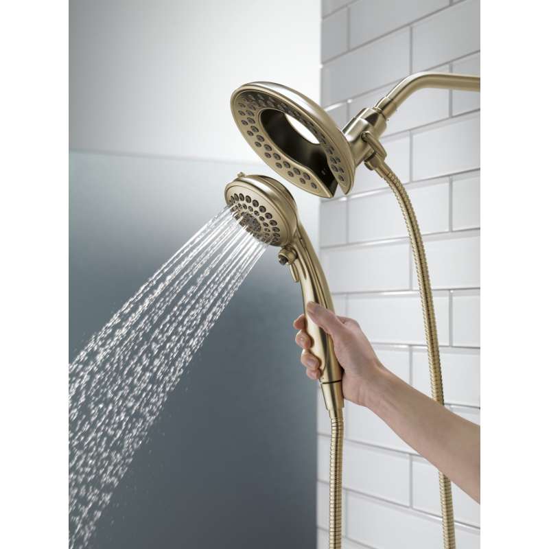 The Delta In2ition Two-in-One Shower features a detachable hand shower which can be used separately from or simultaneously with the shower head. This integrated dual-functionality gives you maximum flexibility without sacrificing warmth, as you can choose to have water streaming from the shower head only, the hand shower only or both the shower head and hand shower at once. While other products may gather unsightly mineral build-up over time, Delta soft rubber Touch-Clean spray holes allow any mineral residue to simply be wiped away for an instantly refreshed look – with no need for soaking or the aid of chemical cleaners. The pause setting gives you ample space for shaving, lathering and other shower tasks, then easily restarts the water with the temperature where you left off. This spray setting helps you conserve water, so you can worry less about depleting your supply of hot water - and you help the environment too. Delta WaterSense labeled faucets, showers and toilets use at least 20% less water than the industry standard—saving you money without compromising performance. Create a luxurious shower experience with a Delta hand shower/shower head combination. Whether you're remodeling your space or upgrading your existing setup, our hand shower/shower head combos will give you more flexibility and coverage in a variety of stunning styles.