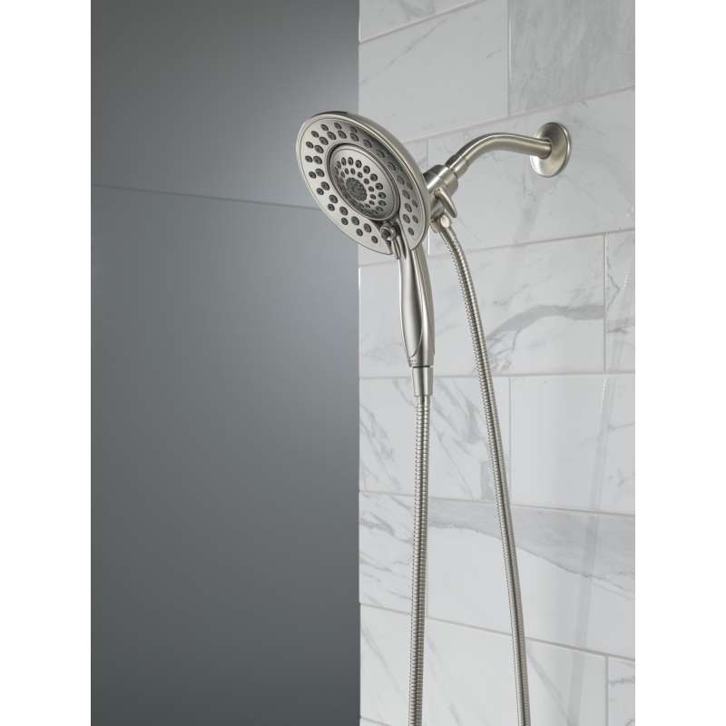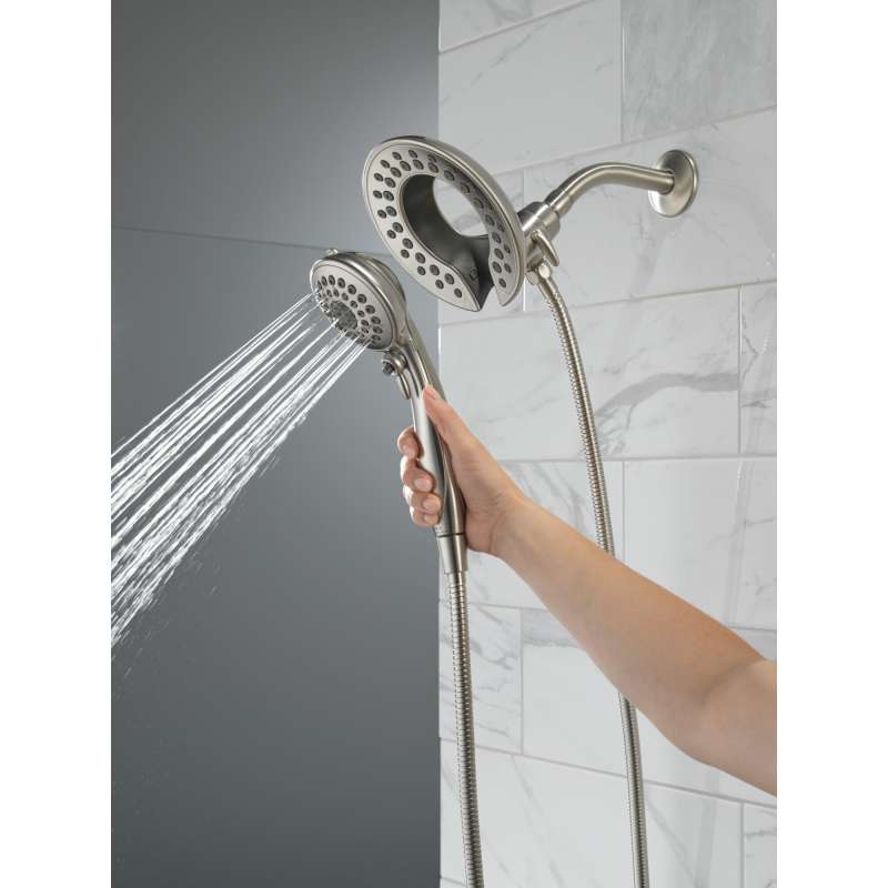 The Delta In2ition Two-in-One Shower features a detachable hand shower which can be used separately from or simultaneously with the shower head. This integrated dual-functionality gives you maximum flexibility without sacrificing warmth, as you can choose to have water streaming from the shower head only, the hand shower only or both the shower head and hand shower at once. While other products may gather unsightly mineral build-up over time, Delta soft rubber Touch-Clean spray holes allow any mineral residue to simply be wiped away for an instantly refreshed look — with no need for soaking or the aid of chemical cleaners. You can install with confidence, knowing that Delta showers are backed by our Lifetime Limited Warranty.